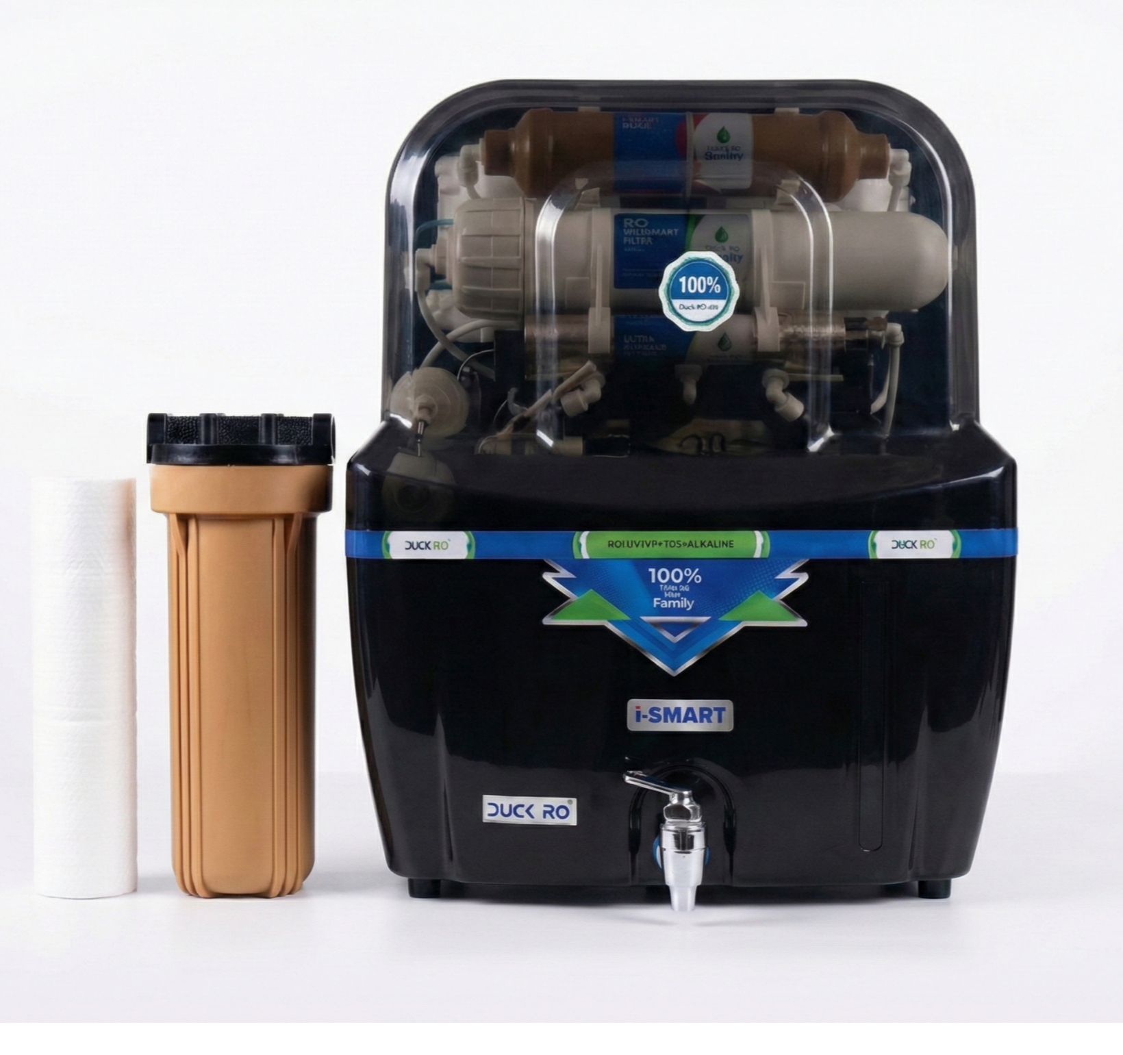 Duck RO i-SMART Black Series – Advanced RO + UV + UF + TDS + Alkaline Water Purifier with Transparent Cover